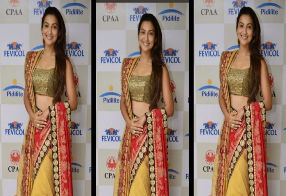 Gauhar Khan wore Red Saree, in which she was looking most beautiful. Red Pallu Lace Sarre with matching other Side Yellow net Pallu was looking very pretty. Red Saree with Matching Short Sleeveless Blouse was looking very beautiful.